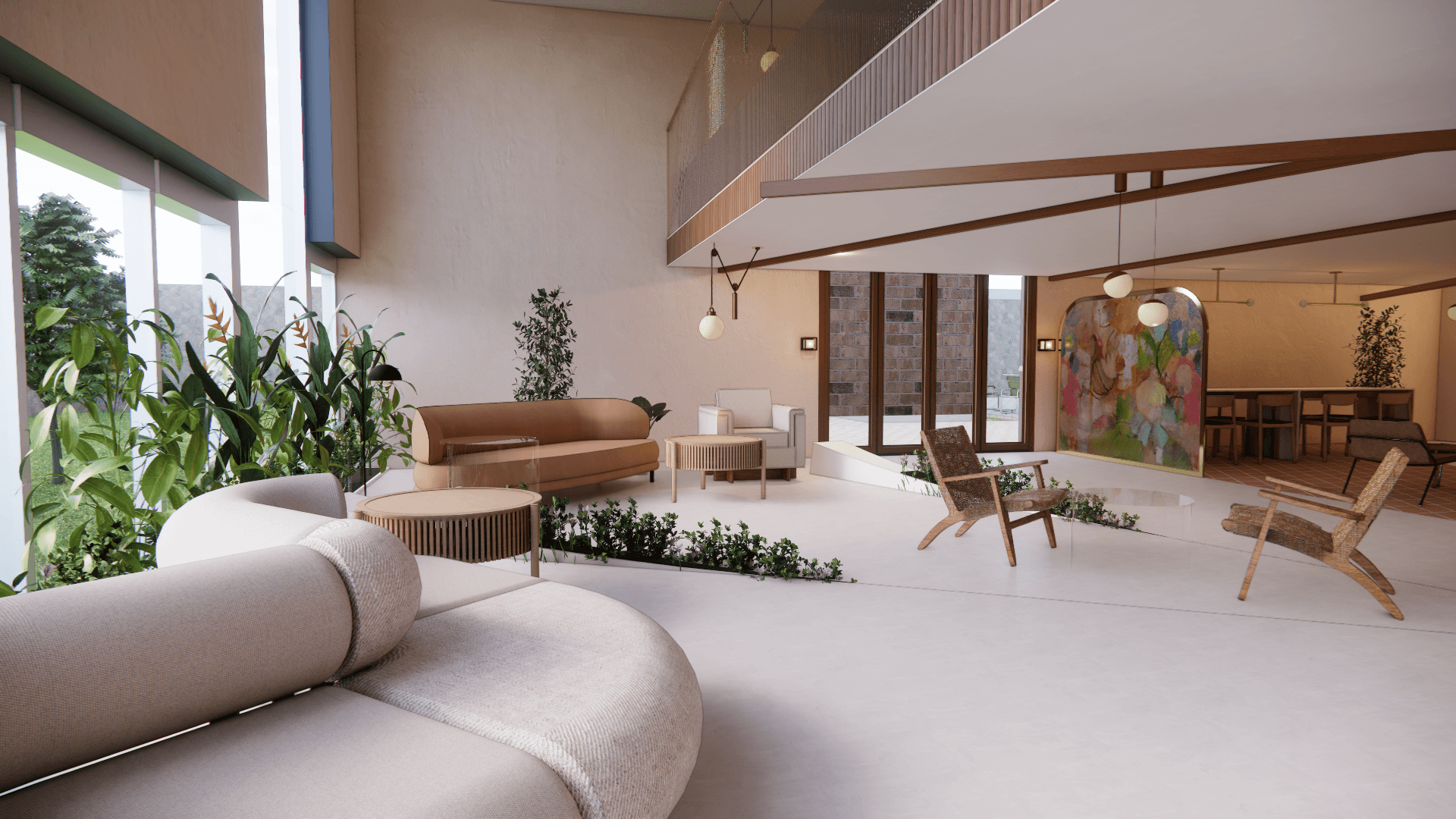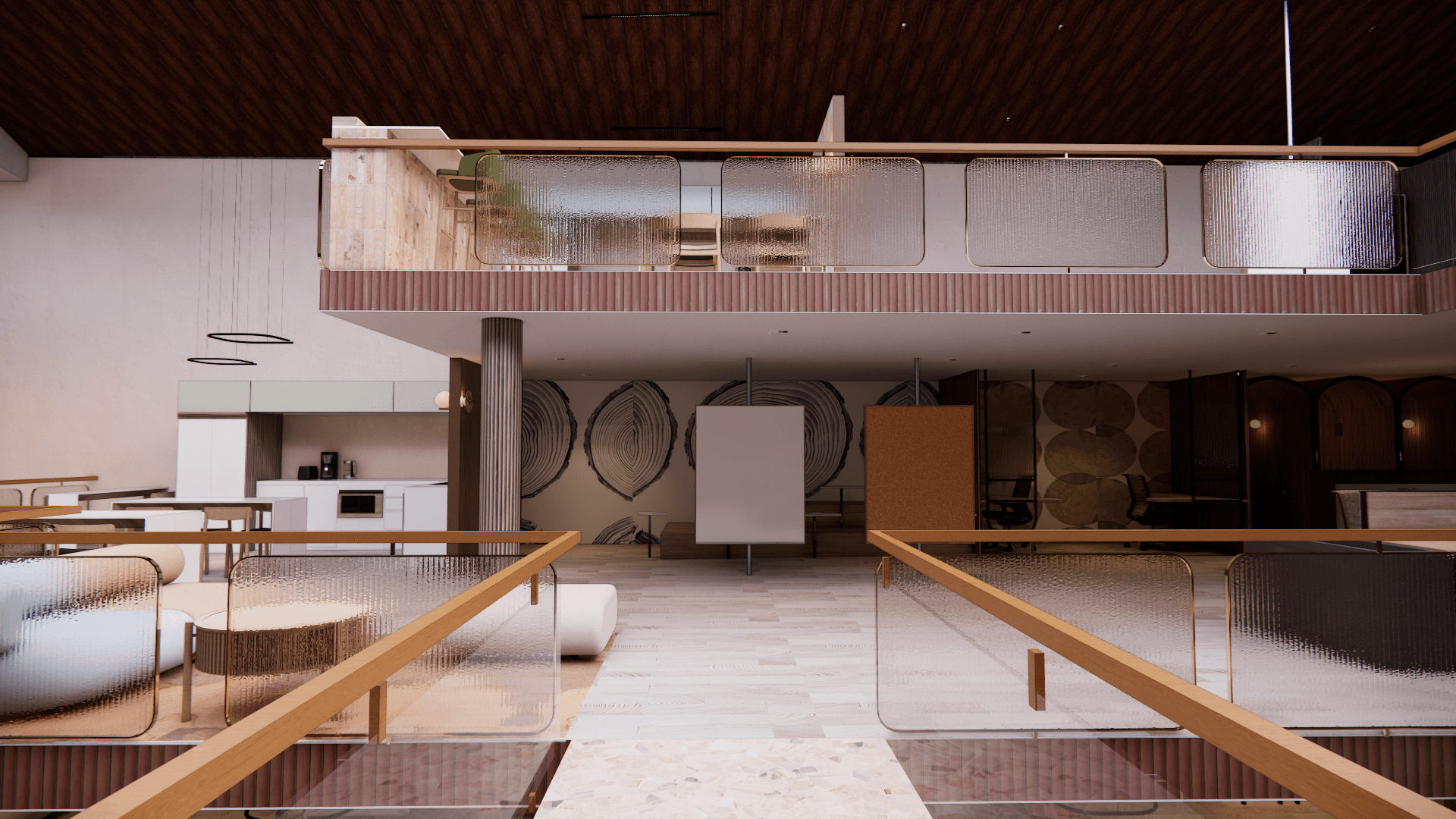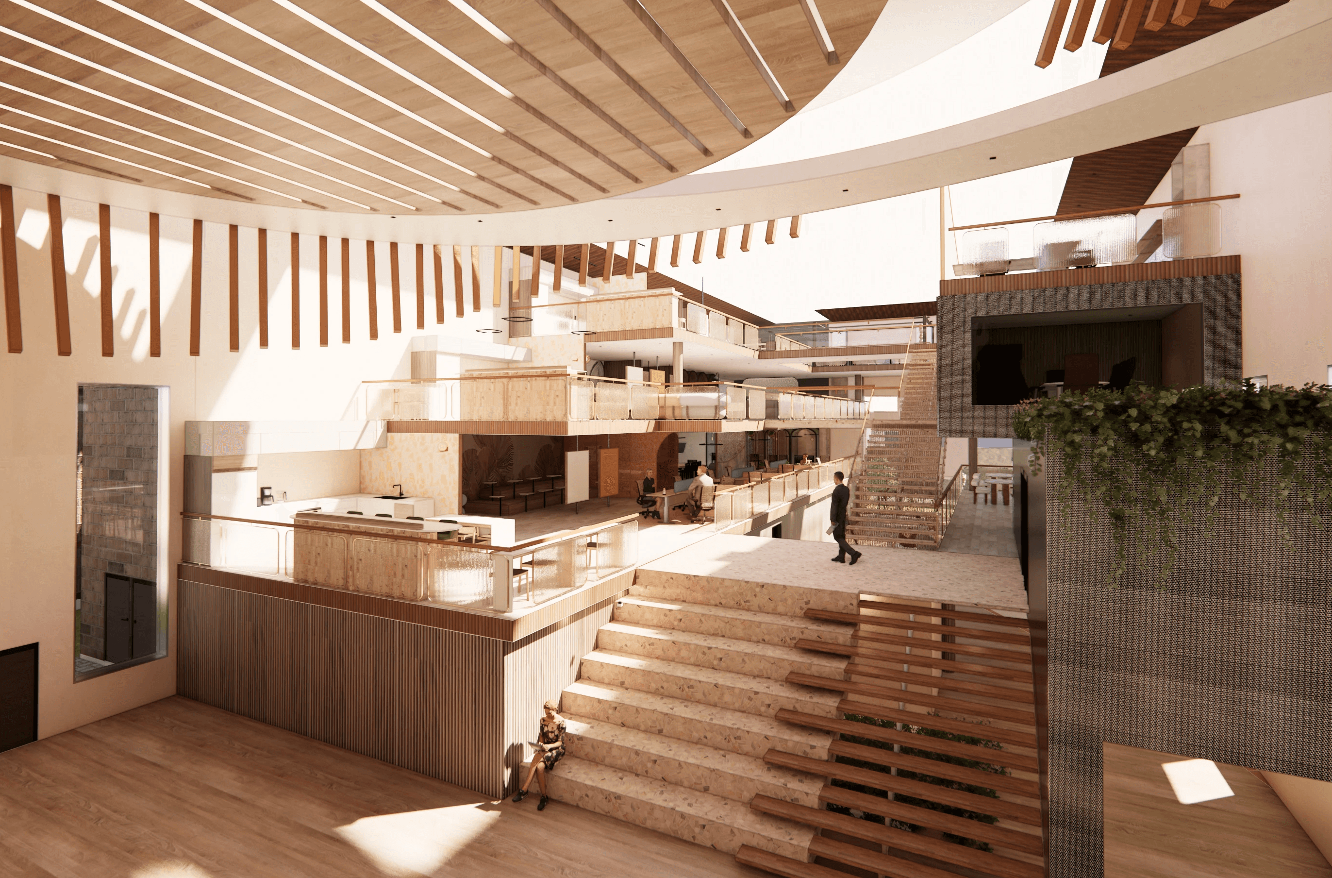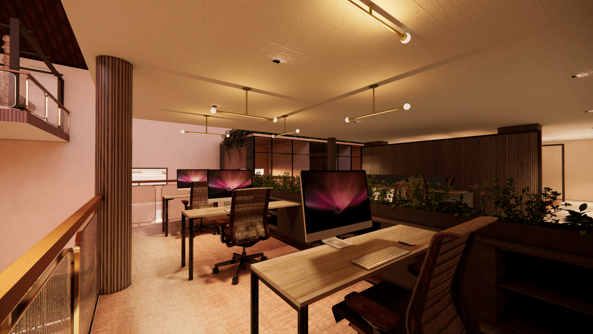 The design was guided by three main goals: fostering innovation in the workplace, cultivating unity and community, and encouraging proactive charity. Each space is envisioned as part of a dynamic environment that inspires collaboration, motivation, and growth. The project emphasizes bringing communities together to build strong networks of support while providing local resources and relief. At its core, the design is inspired by a central pillar of Islam — charity — expressed through hands-on initiatives and reimagined approaches to giving back.