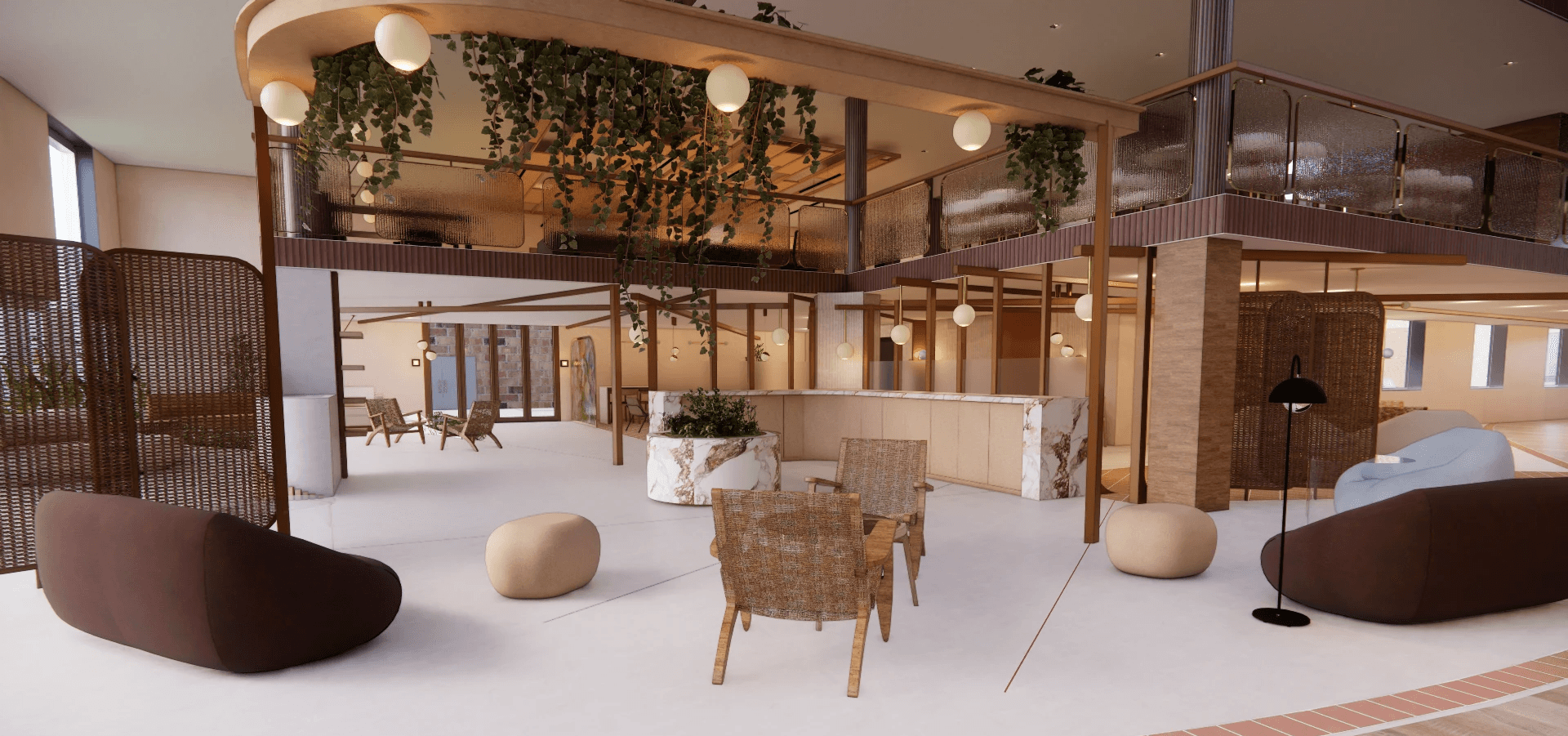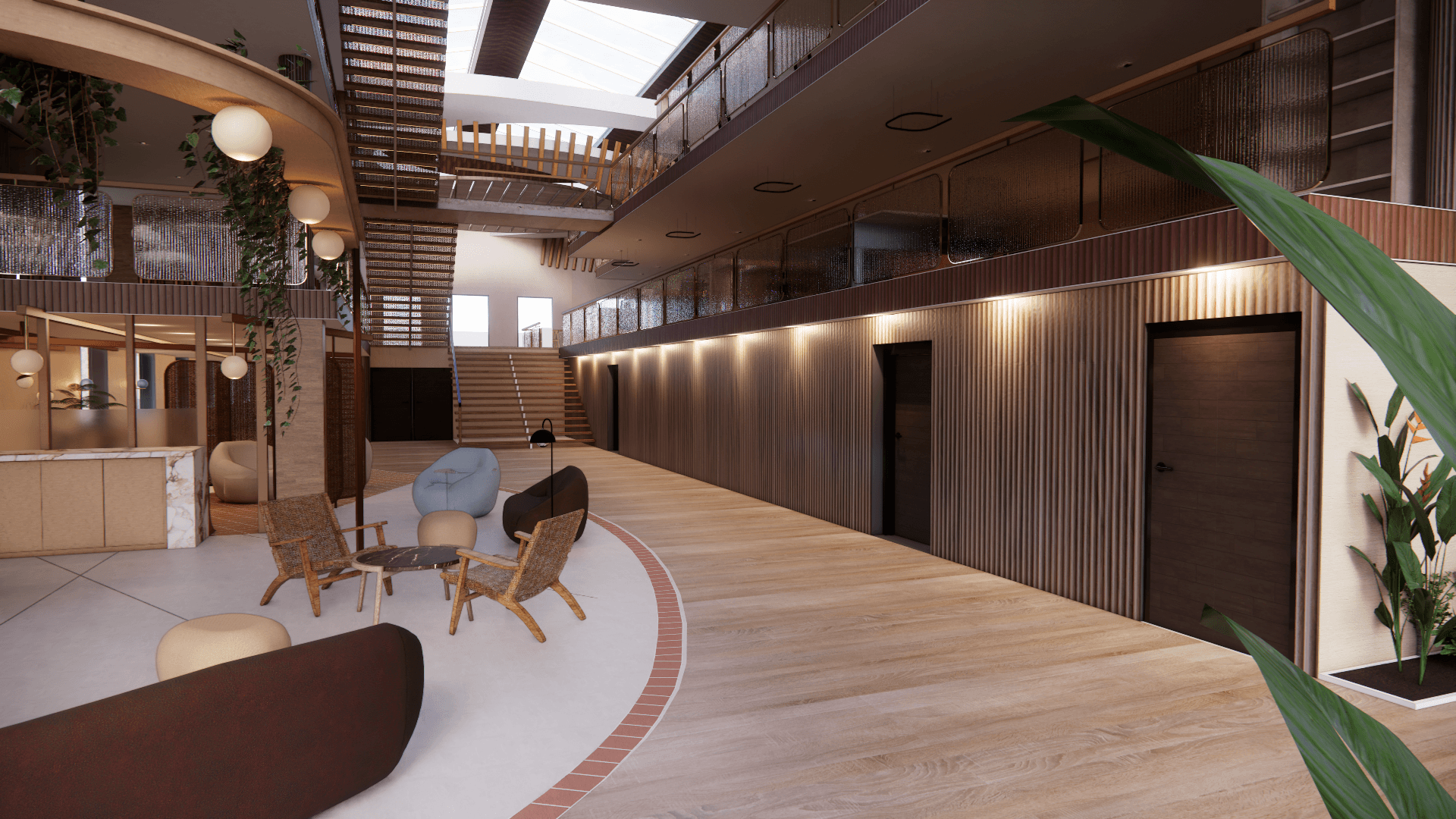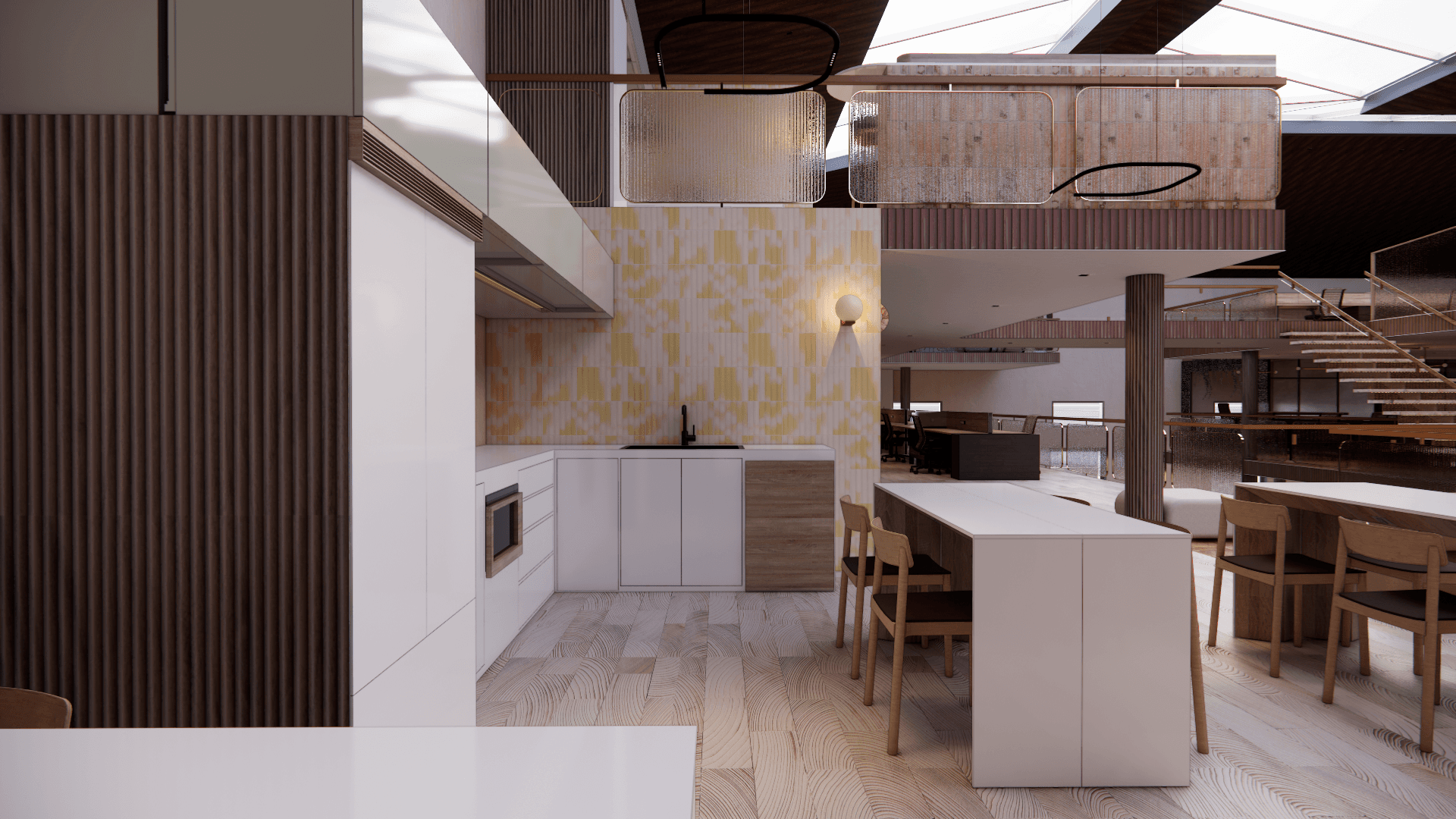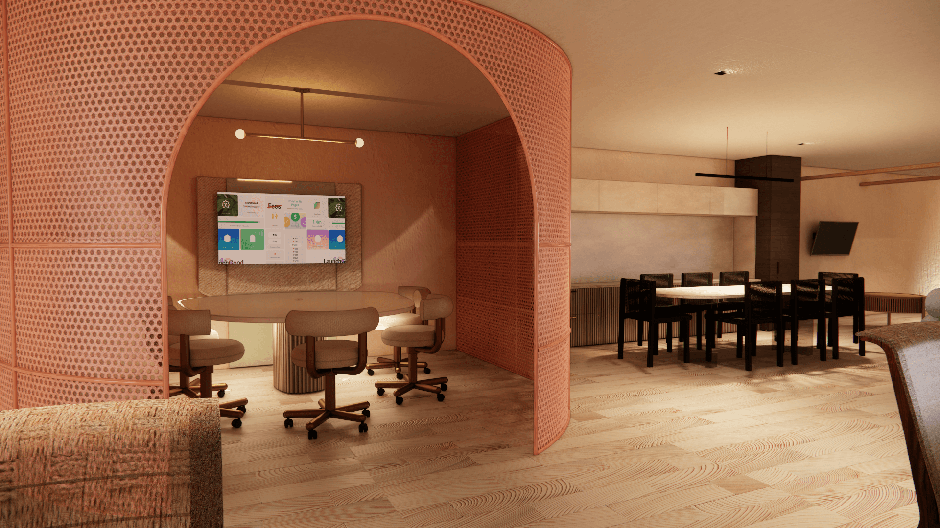 The design was guided by three main goals: fostering innovation in the workplace, cultivating unity and community, and encouraging proactive charity. Each space is envisioned as part of a dynamic environment that inspires collaboration, motivation, and growth. The project emphasizes bringing communities together to build strong networks of support while providing local resources and relief. At its core, the design is inspired by a central pillar of Islam — charity — expressed through hands-on initiatives and reimagined approaches to giving back.
