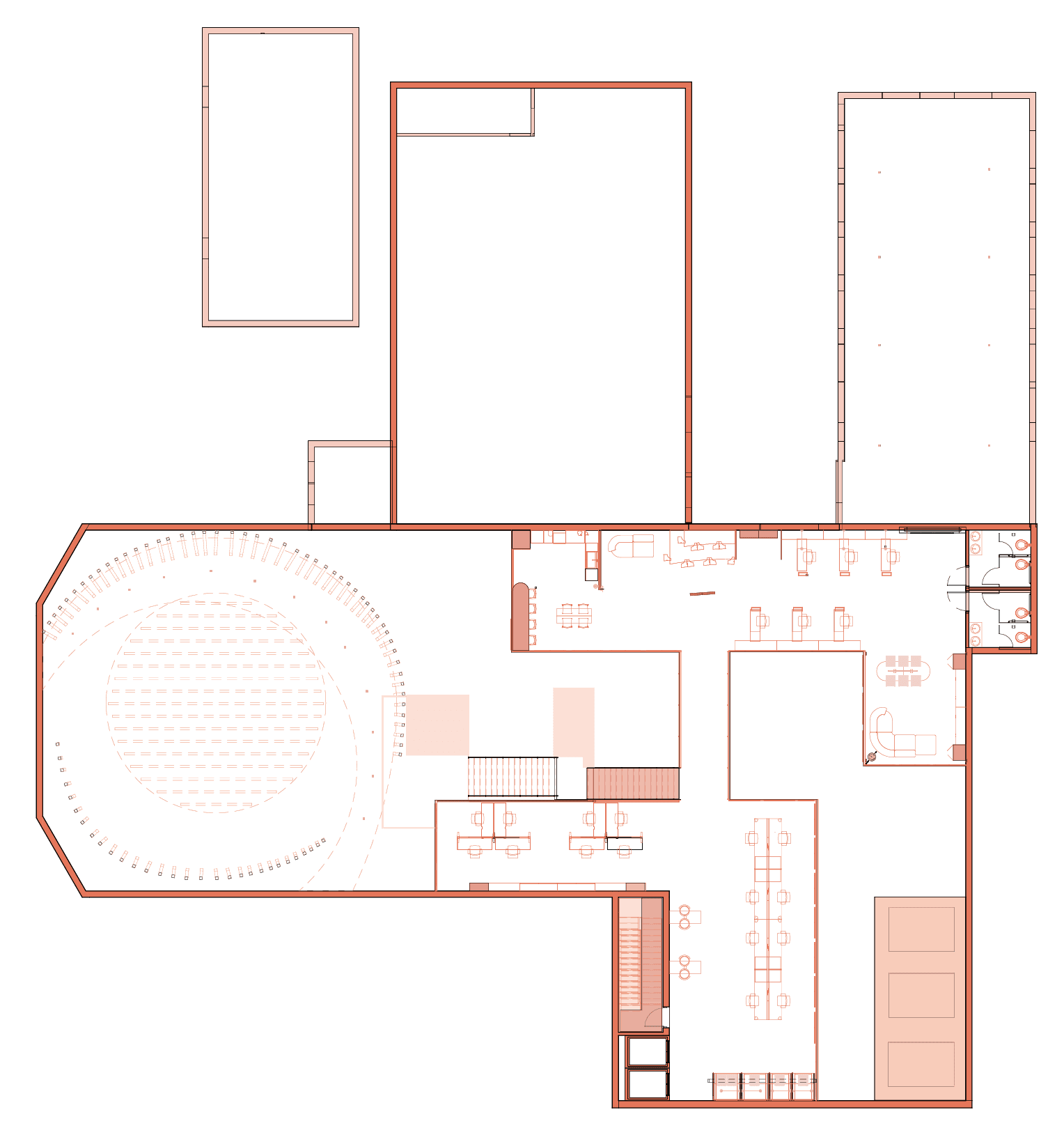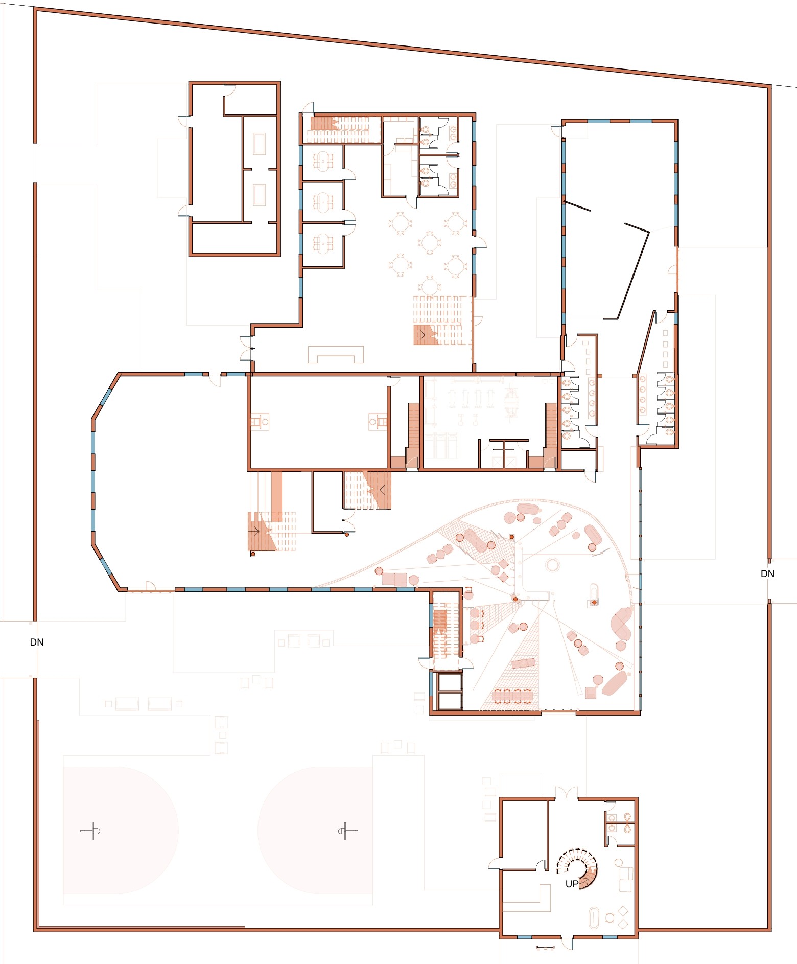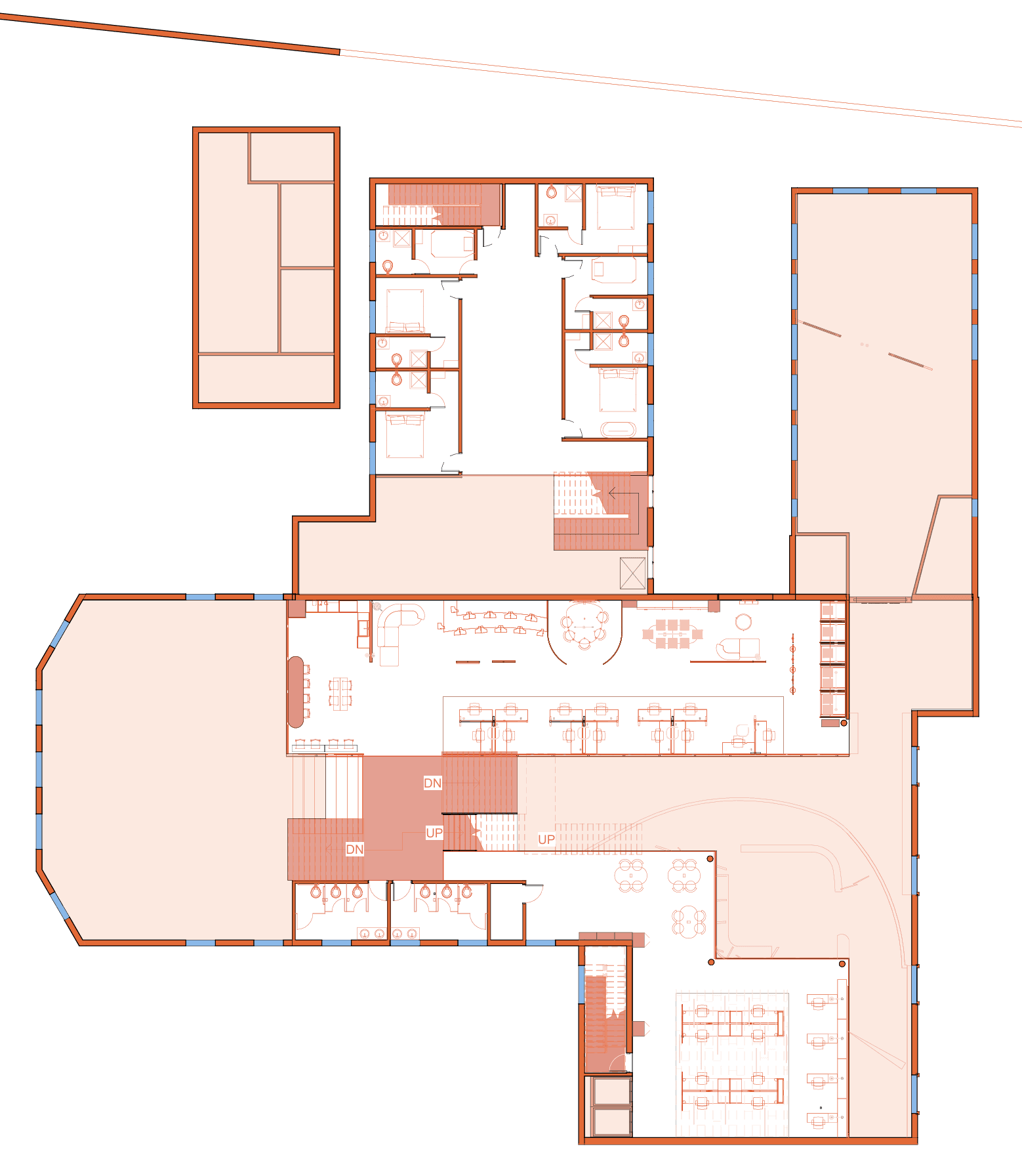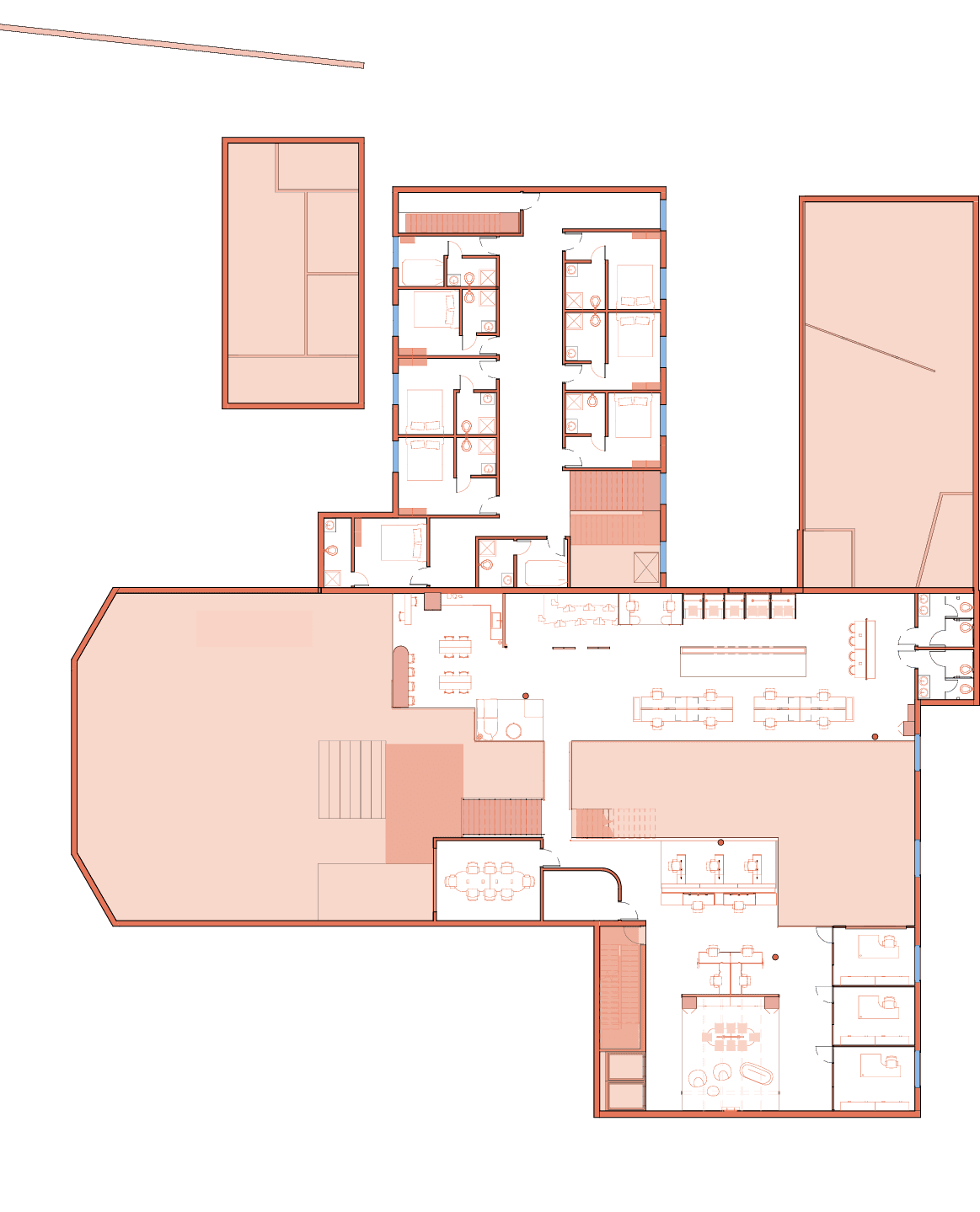 Finalizing proposed programming and an adjacency diagram, the design quickly developed. The building’s form evolves from the idea of levels that diverge and converge, symbolizing balance between separation and connection. Floor areas were shaped by departmental needs, with square footage driving both layout and flow.