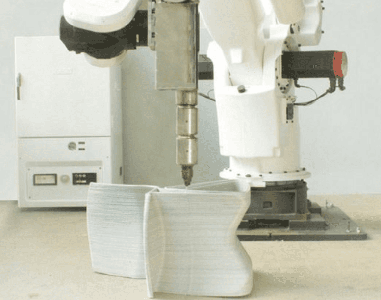 The chair is 3D printed out of recycled refrigerators. It was made in one continuous motion and repetition. No two chairs are alike, as bound imperfections are celebrated in the design. Various profiles are offered.