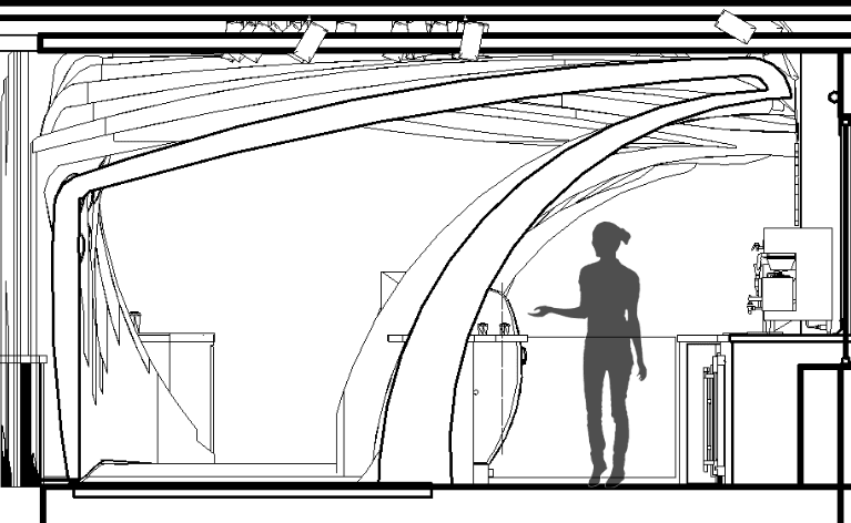 The idea of layering elements developed the main structure of the space. This developed into a vortex-like tunnel effect.
