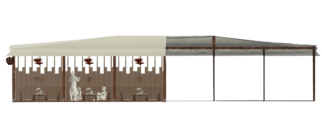 The temporary extension of Toki Toki will offer the traditional and beautiful setting that honors the quality of their food. This will provide a beautiful space for all customers to enjoy traditional Korean Barbeque in an outdoor setting. By creating this outdoor space, Toki Toki will receive the attention it deserves for the delicacy it serves.